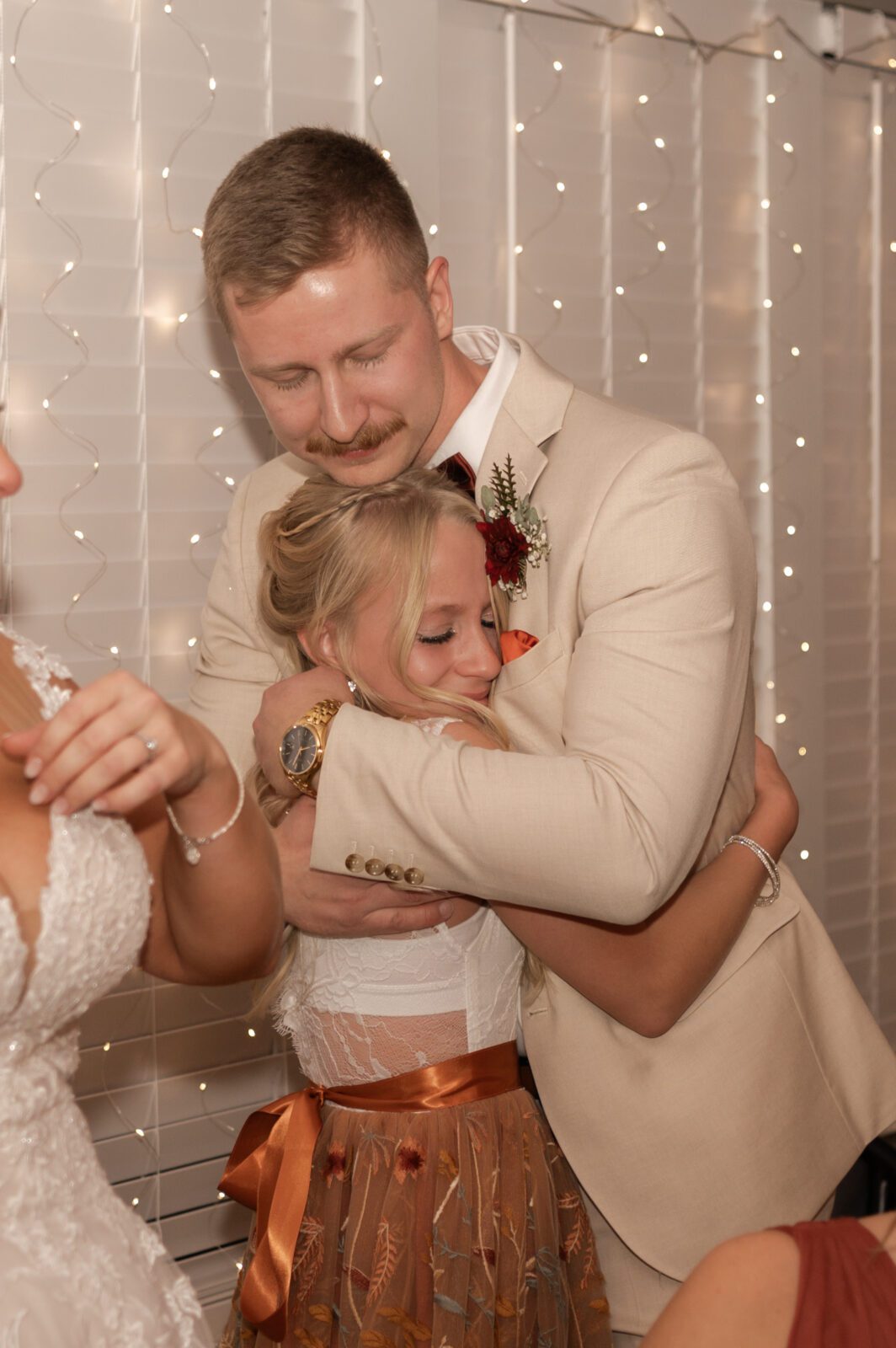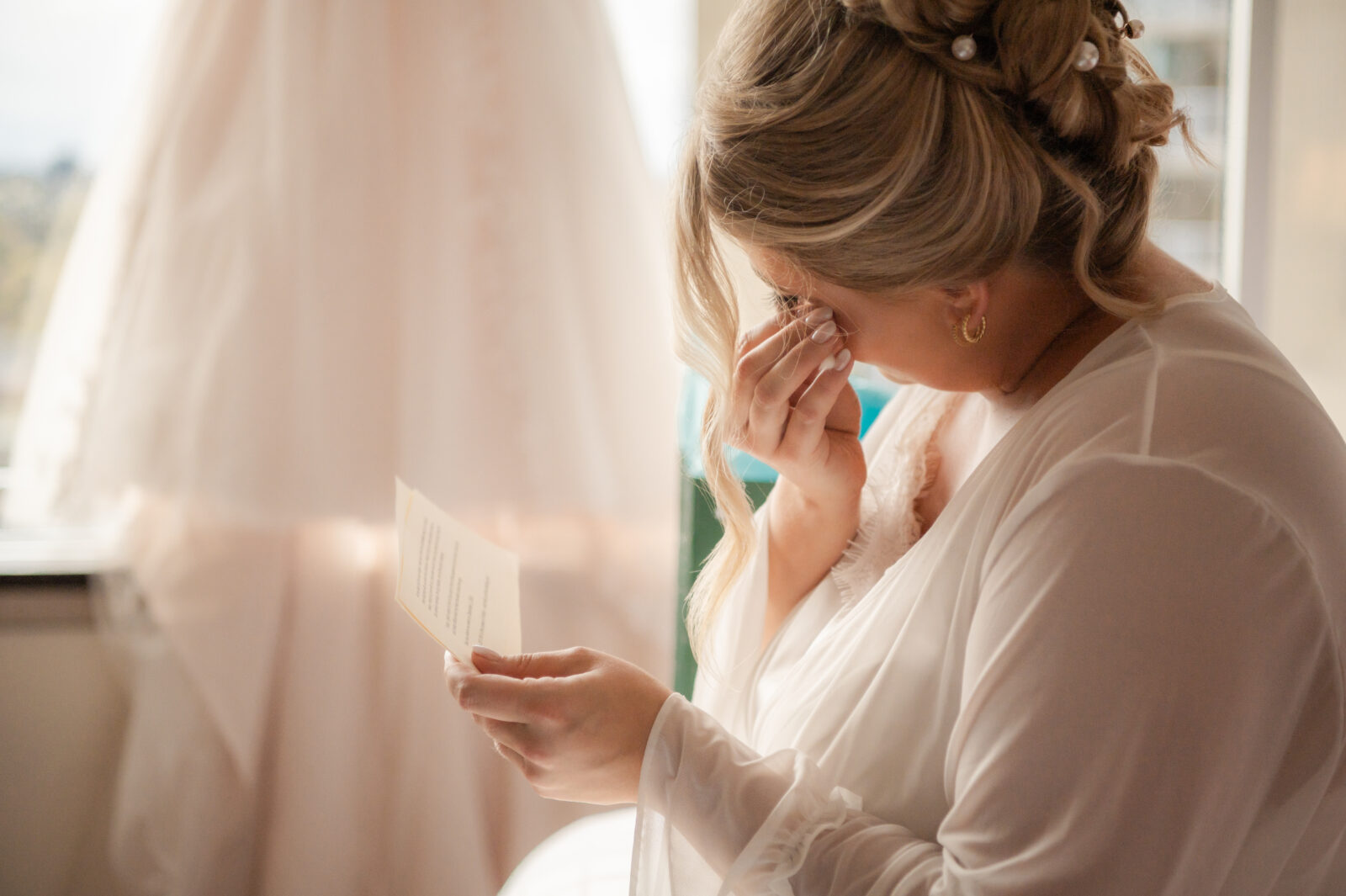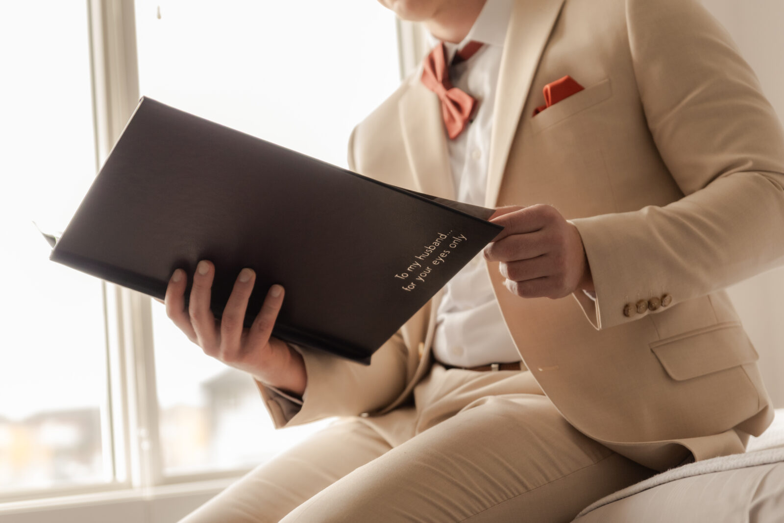 Ben had secretly arranged a gift for Kay, along with handwritten letters for each of the girls that morning. At the same time, Kay had her own surprise waiting for him; a boudoir album she and I had created together, delivered through his groomsmen.