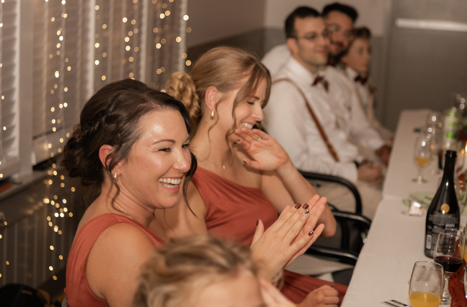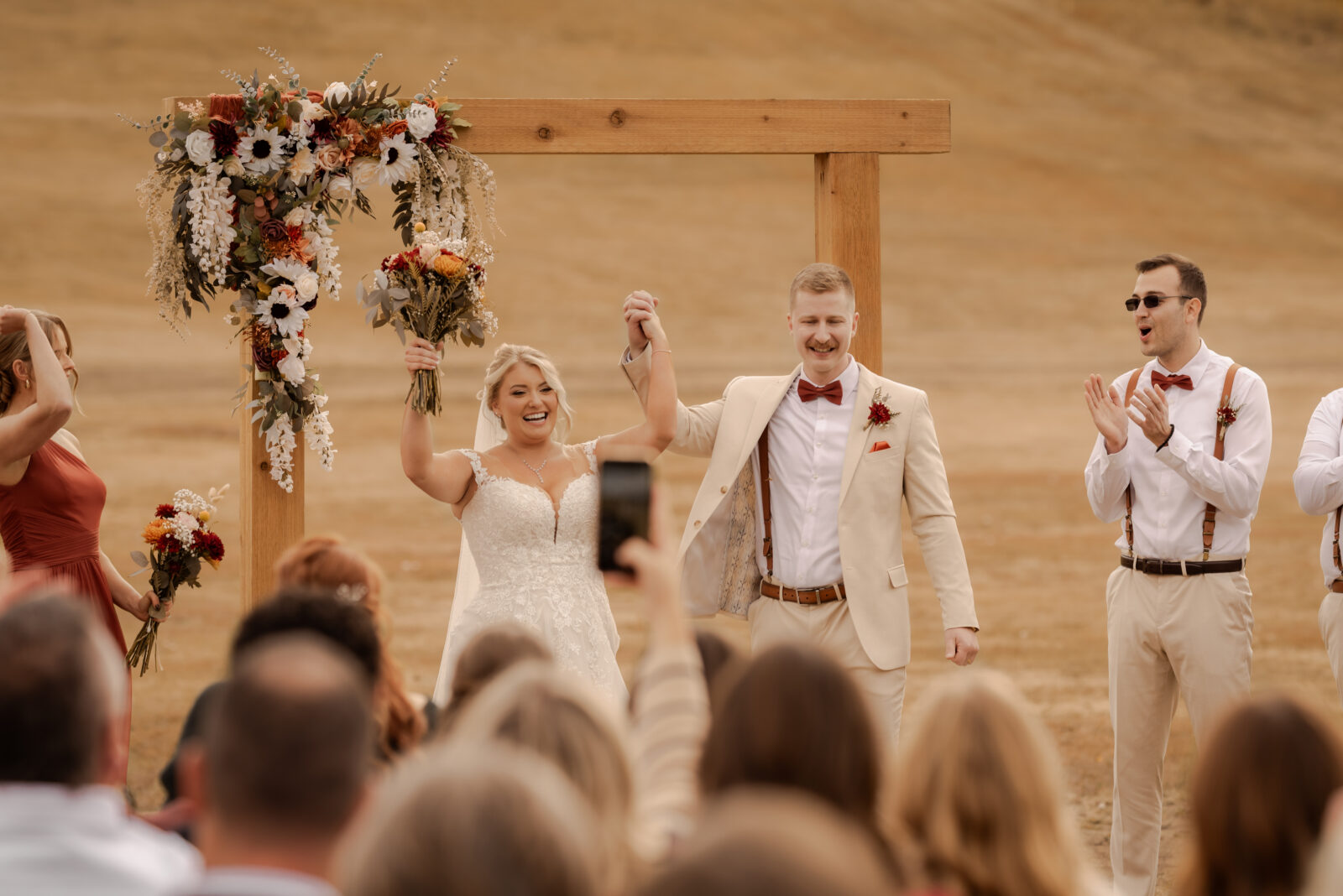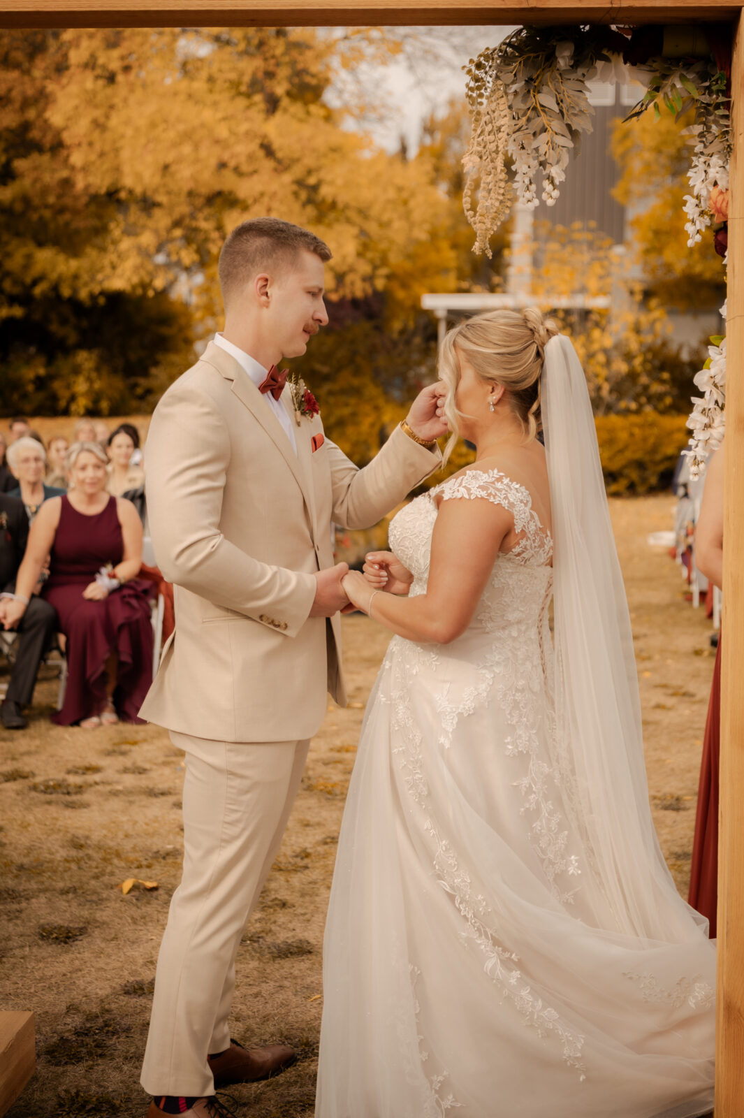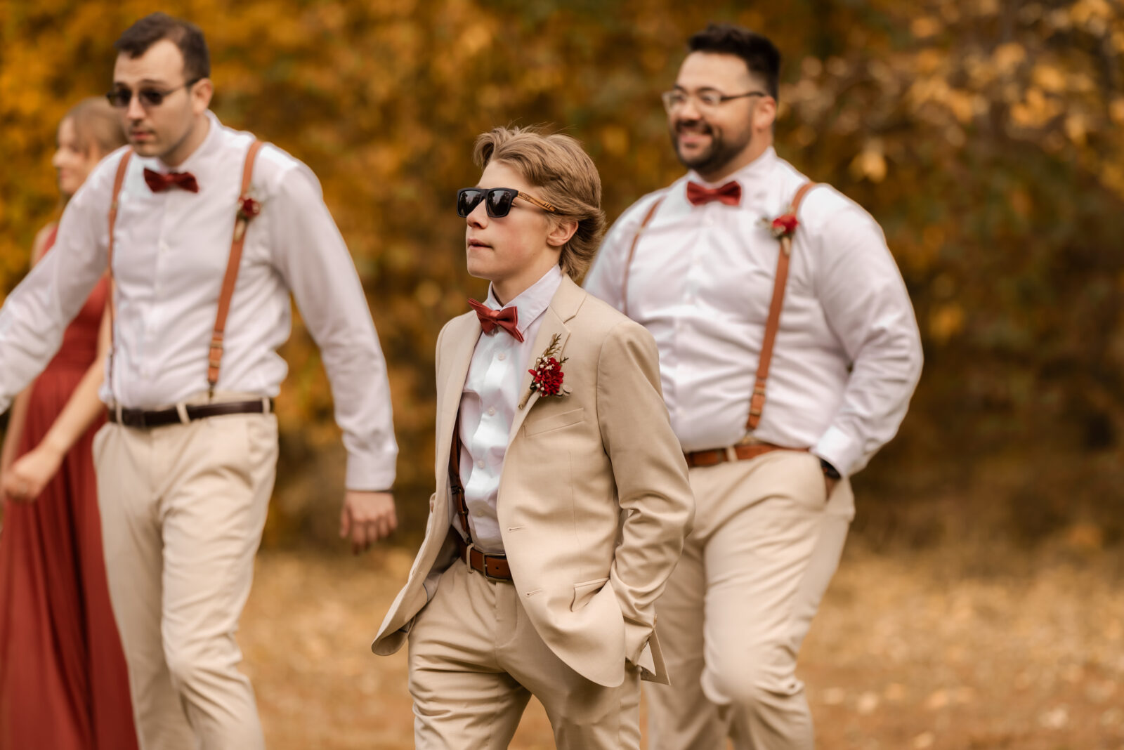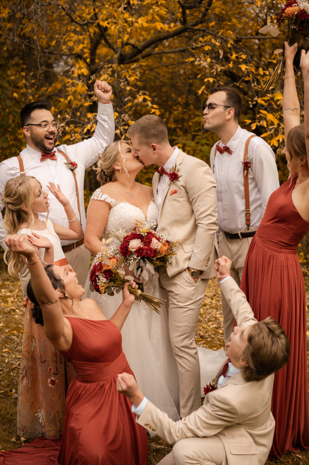 The bridesmaids wore this rich, deep tone that sat somewhere between red and burnt orange, and it worked beautifully with the season.
