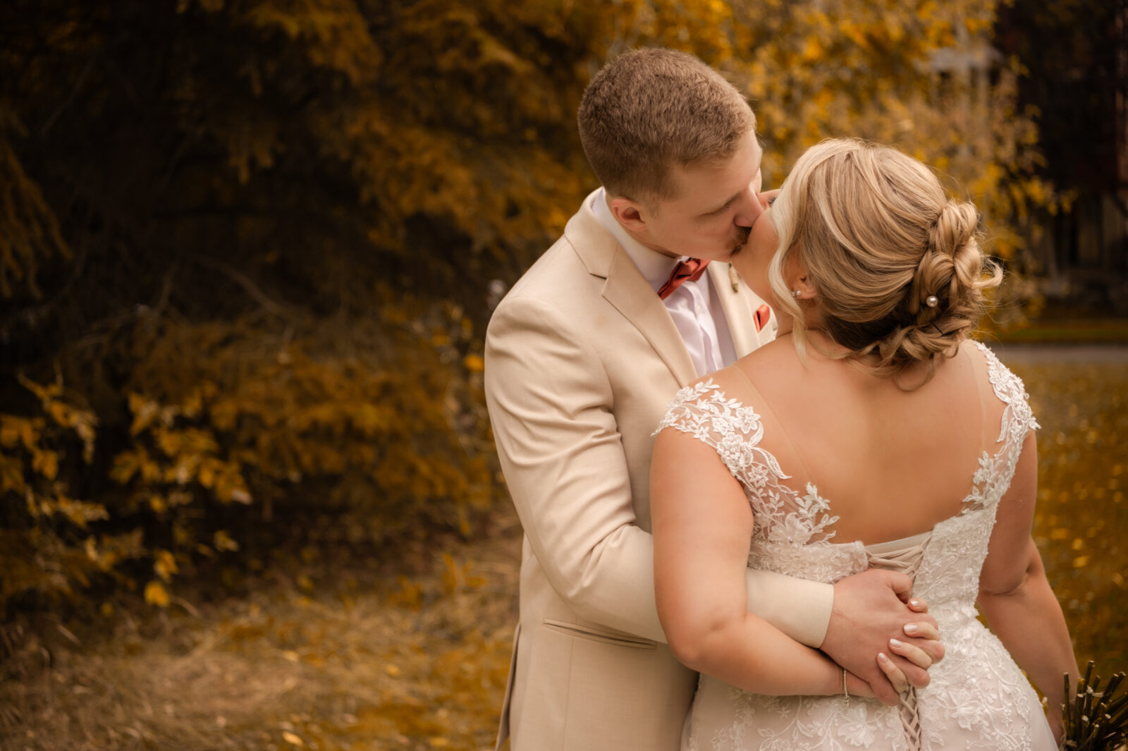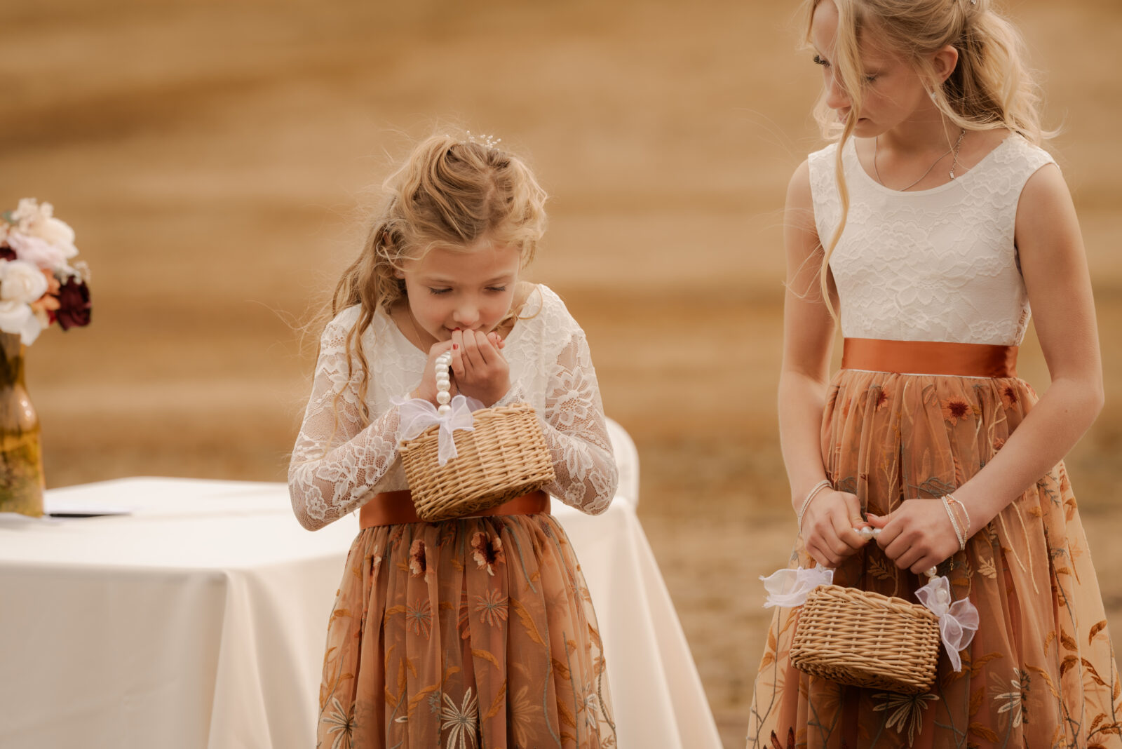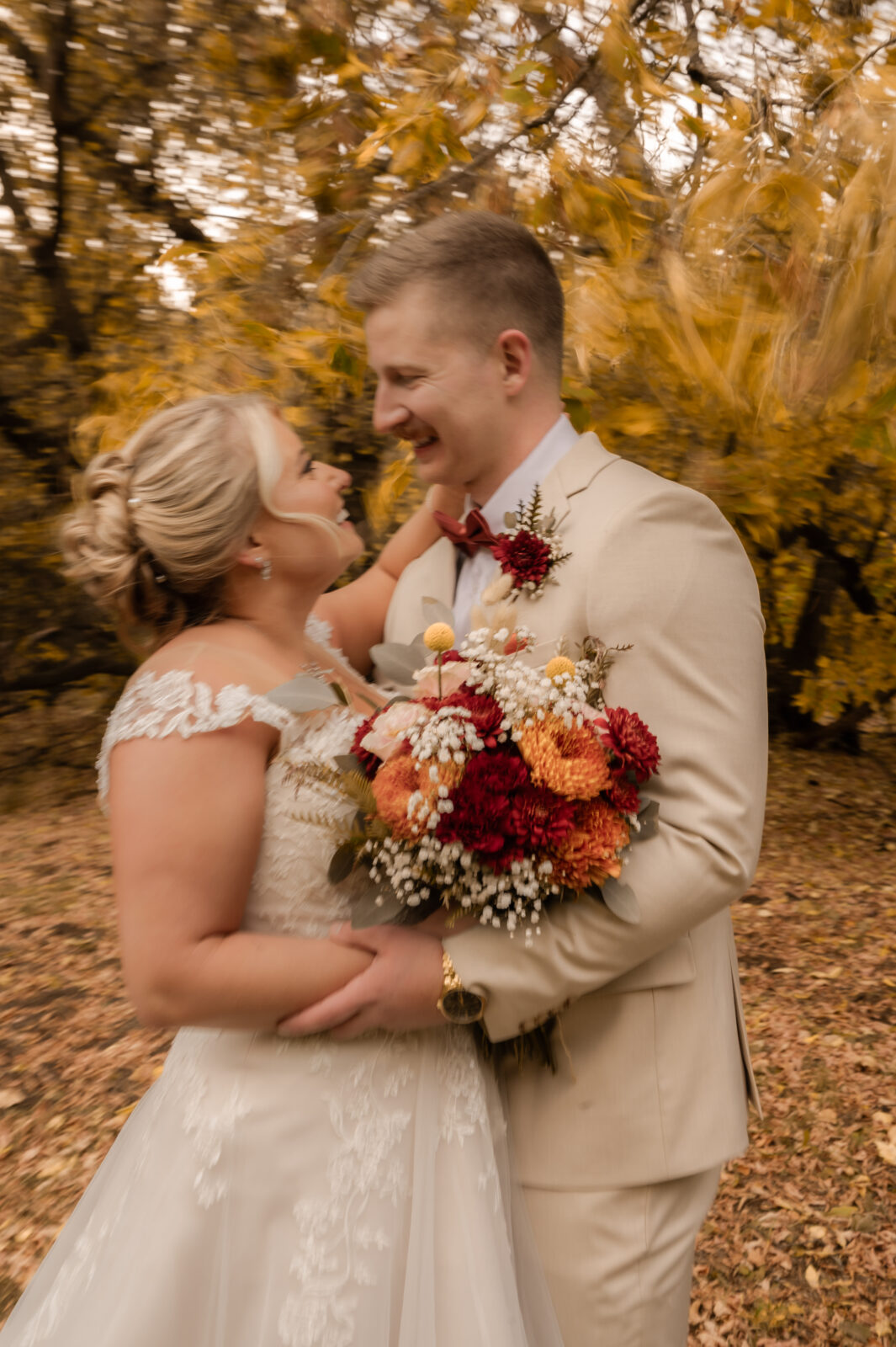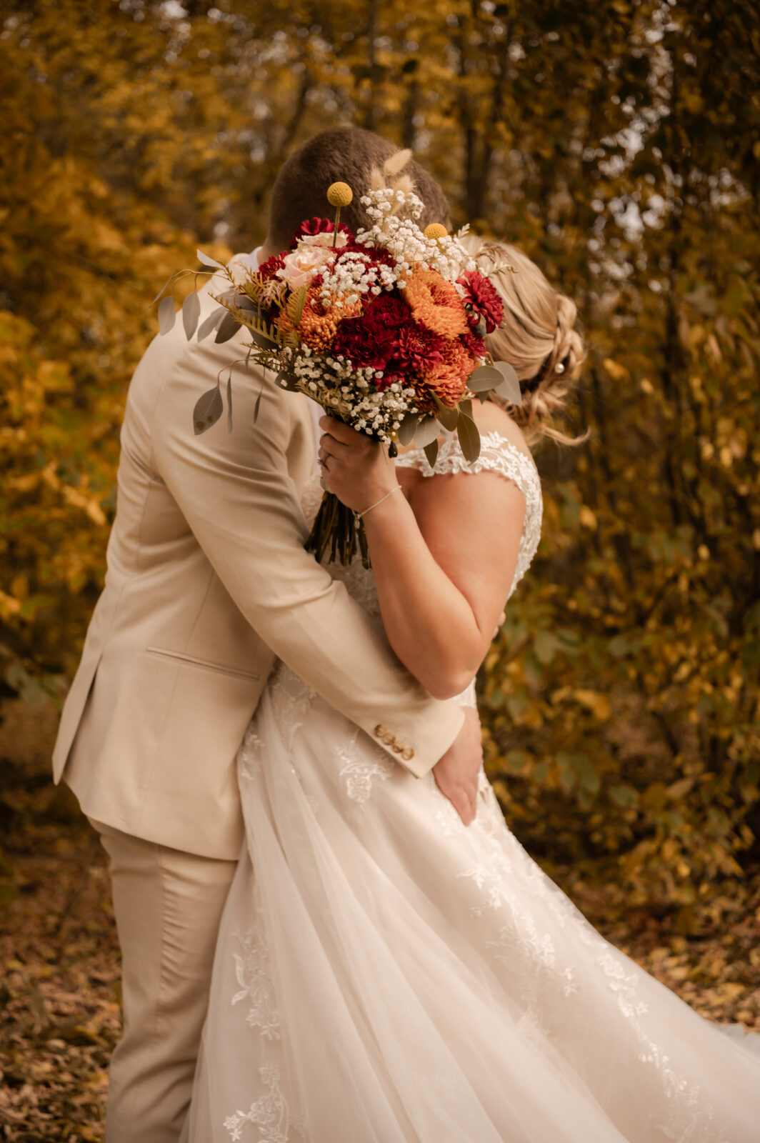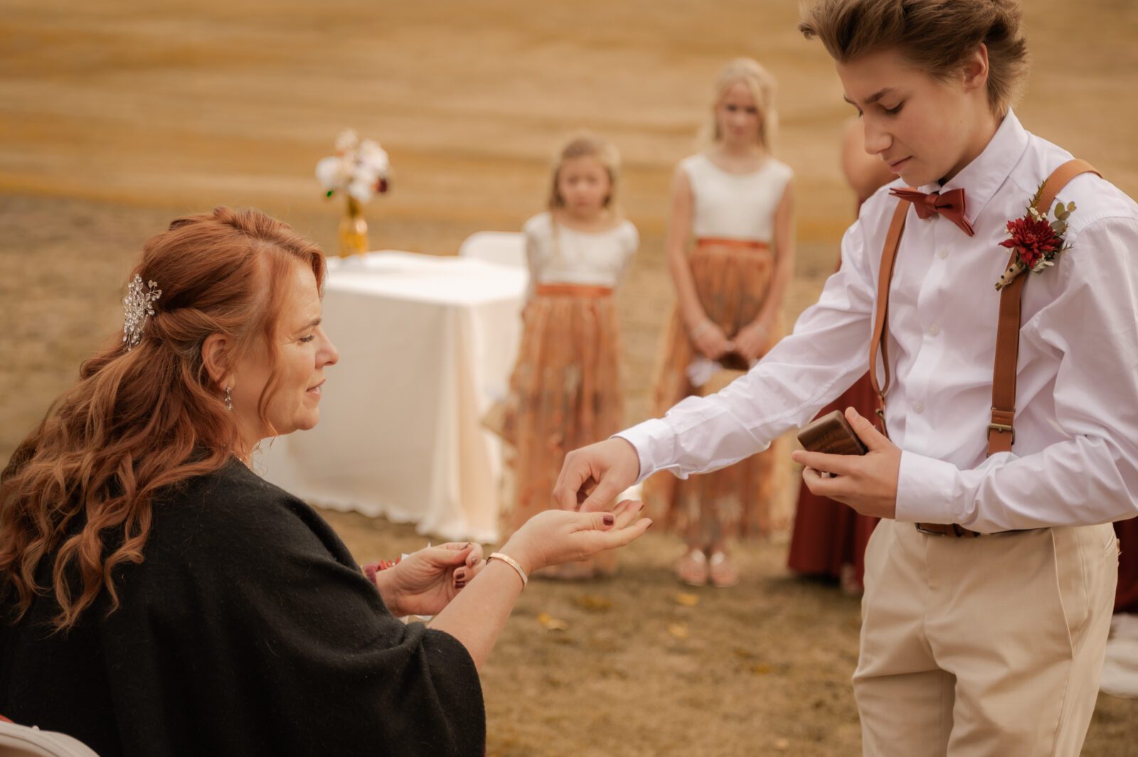 The bridesmaids wore this rich, deep tone that sat somewhere between red and burnt orange, and it worked beautifully with the season.
